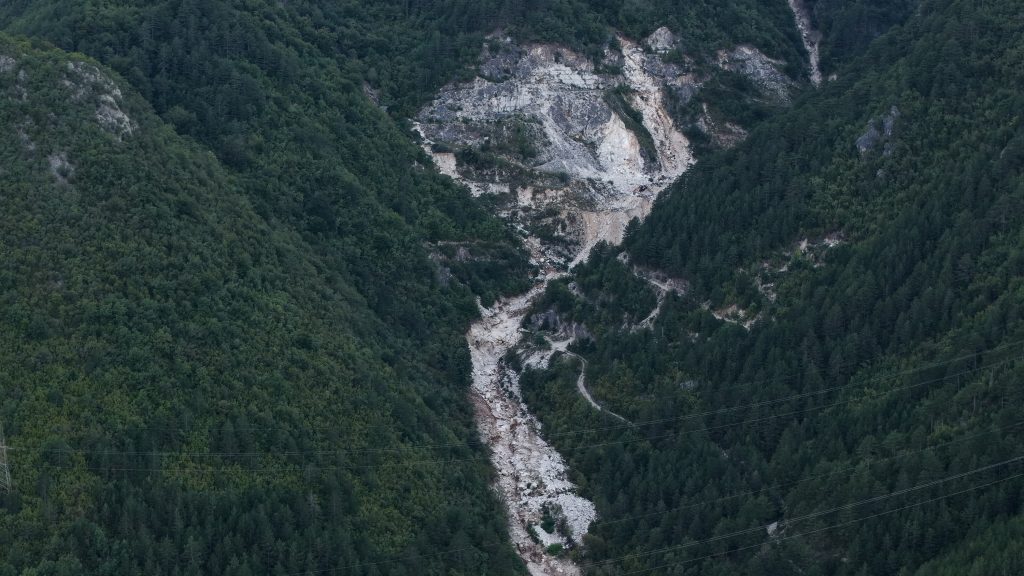 Posebnu sumnju izaziva nalaz Federalnog zavoda za geologiju, koji pokazuje da je u odronu pokrenuto više od 171.000 kubnih metara materijala, od čega se gotovo 11 posto odnosi upravo na zonu kamenoloma. Na terenu su pronađeni brojni tehnički obrađeni blokovi dolomita, ali i otpad od gabra, stijene koja prirodno ne postoji na tom mjestu. To ukazuje da je kamenolom korišten mimo propisa, iako nikada nije imao koncesiju ni okolišnu dozvolu. Situaciju je dodatno pogoršao veliki požar iz 2021. godine, kada je izgorjela šuma iznad lokaliteta, ostavljajući padinu bez prirodne zaštite od klizišta.