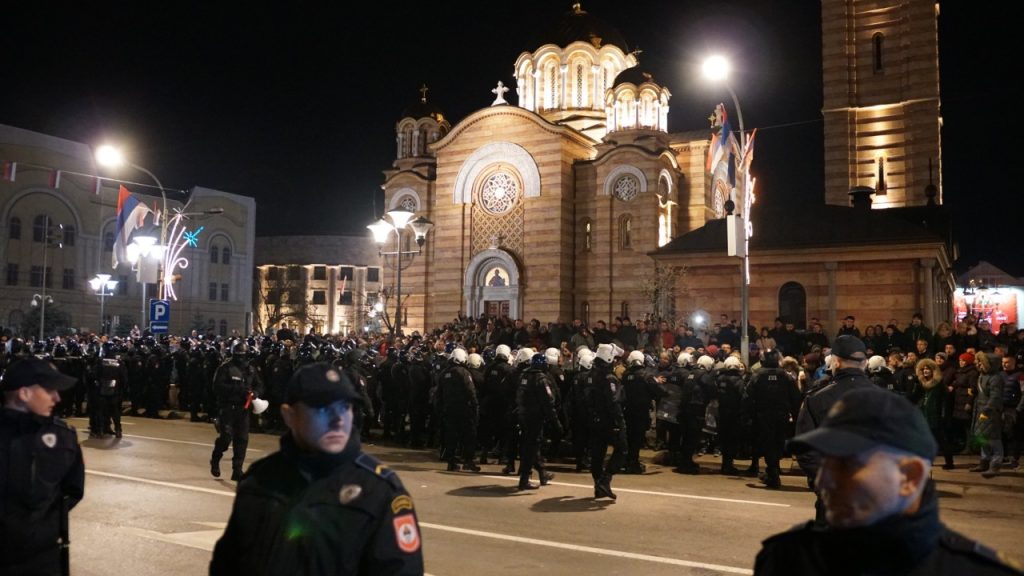 Građani uzvikuju policiju: “Ubice, ubice” i “Idite na Kosovo”.