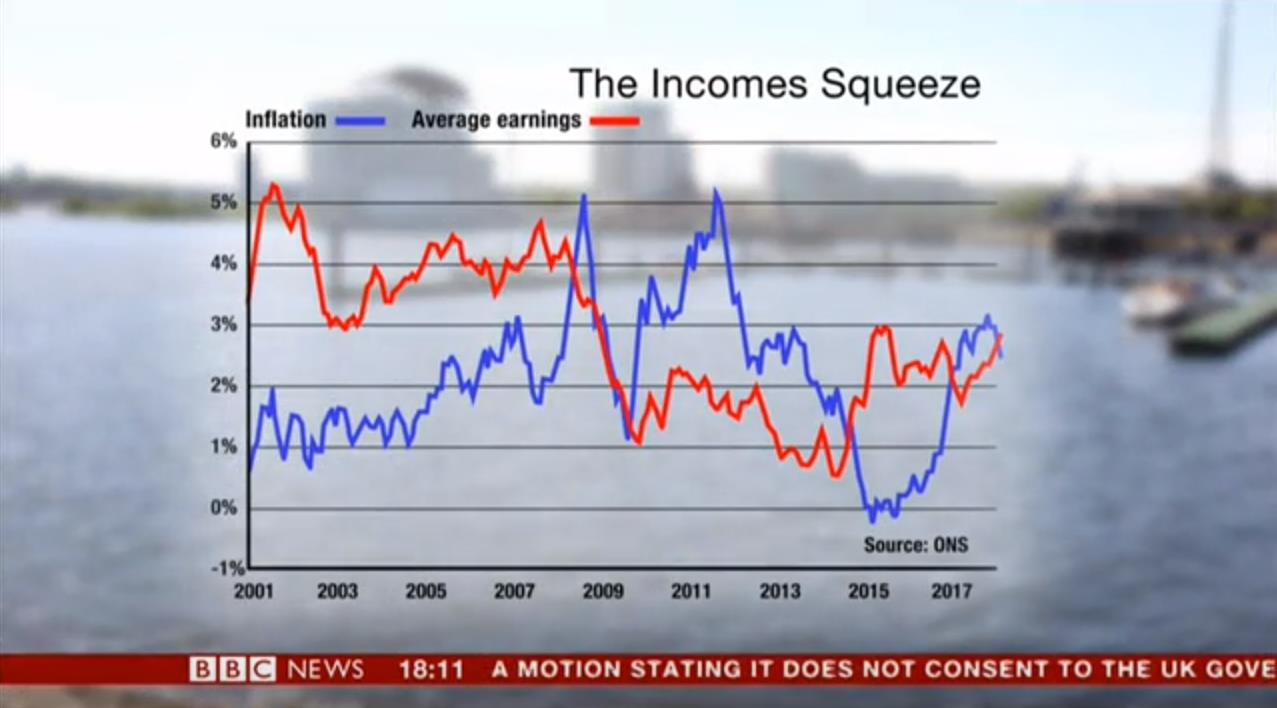 U narednom prilogu se navode podaci Kancelarije za nacionalnu statistiku koji kažu da je došlo do povećanja plata u odnosu na isti period prošle godine. Međutim, u prilogu se izražava rezerva u vezi sa tim podatkom i sugeriše da se sačeka još malo da se vidi da li će i kako to povećanje uticati na stanovništvo. U prilogu se dalje navode izjave običnih ljudi koji ističu da je došlo do poskupljenja ostalih namirnica tako da se povećanje plata u suštini i ne primjeti. Takođe, navode se statistički podaci koji govore o kretanju prihoda i koji pokazuju da su prije deset godina prihodi bili znatno viši. Dakle, BBC nije odmah afirmativno izvjestio o informaciji o povećanju plata nego je ispitao stvarno stanje i uporedio sa podacima iz prethodnih godina. Na taj način je na uravnotežen način predstavio informaciju.