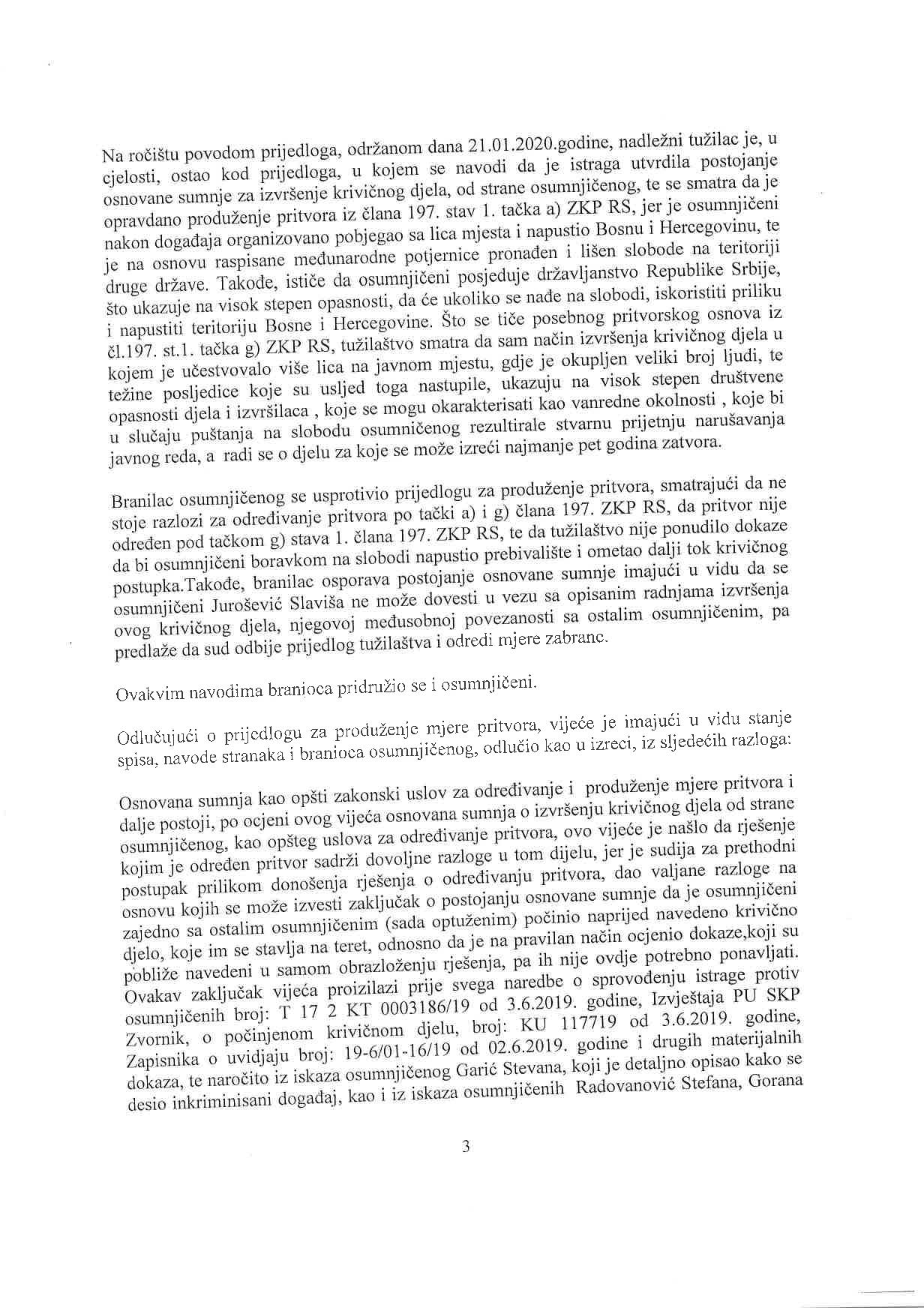 Sud u obrazloženju svoje odluke navodi, između ostalog, da je Jurošević porodičan čovjek, otac dvoje maloljetne djece a u rješenju je donio mjere zabrane kao što su ograničeno kretanje i oduzimanje putnih i ličnih isprava. Jurošević će svakog prvog u mjesecu morati da se javlja u policijsku stanicu u Milićima.