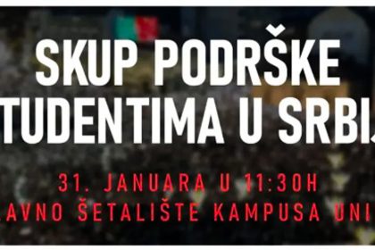 Mirni skup podrške studentima u Srbiji održaće se ovog petka, 31. januara…