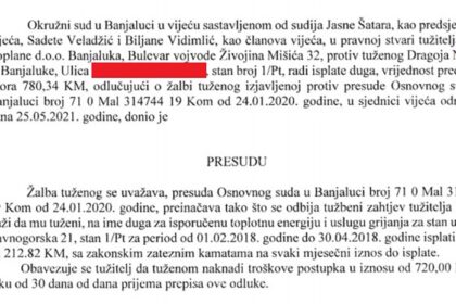 Okružni sud u Banjaluci donio je pravosnažnu odluku na osnovu koje je…