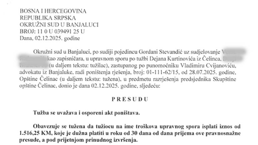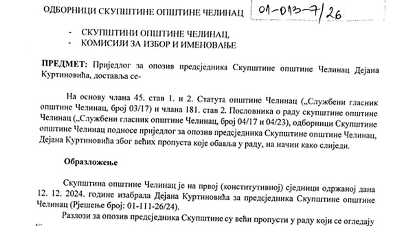 U prijedlogu za opoziv pominju se neusvajanje izvještaja o radu, jedna sporna sjednica iz jula prošle godine i navodne povrede Poslovnika. Pravnici, međutim, tvrde da ništa od toga samo po sebi nije razlog za razrješenje i da je riječ prije svega o političkoj odluci. Nakon što je sud vratio Kurtinovića na funkciju, ta odluka nije sprovedena, a na mjestu predsjednika je ostao i „v.d.“. To u praksi znači da je opština mjesecima imala dva predsjednika Skupštine.